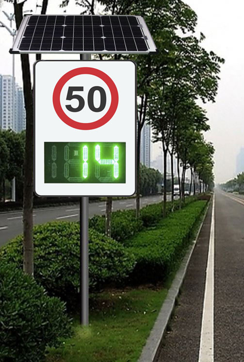 8. Placa de Led: o sinal de radar de velocidade DSI-007P detecta e mostra a velocidade real do veículo, a cor verde para veículos que estão dentro da velocidade permitida e a cor vermelha para veículos acima da velocidade permitida.