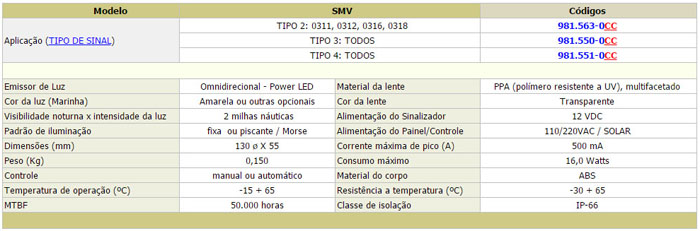 Informações Técnicas: Sinalizador Náutico Ominidirecional SM-700
